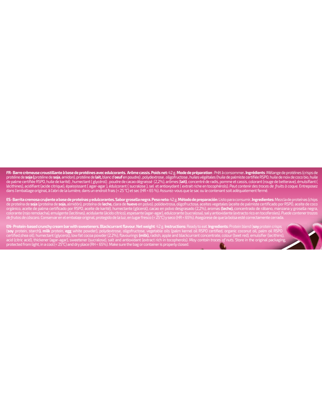 Las barritas de proteína más crunchy del mercado, contienen proteína como primer ingrediente en vez de maltitol u otros polioles. Disfruta de una textura única y de unos sabores irresistibles.