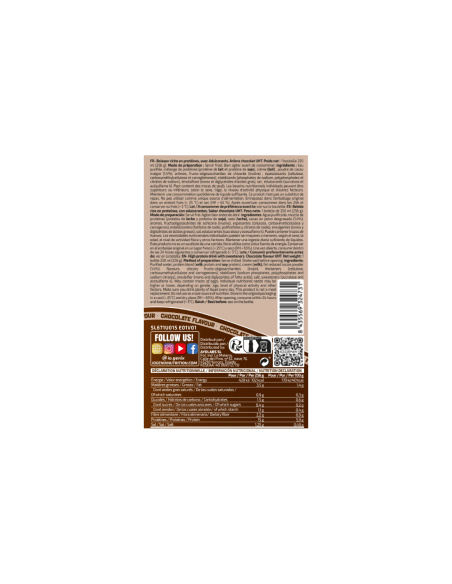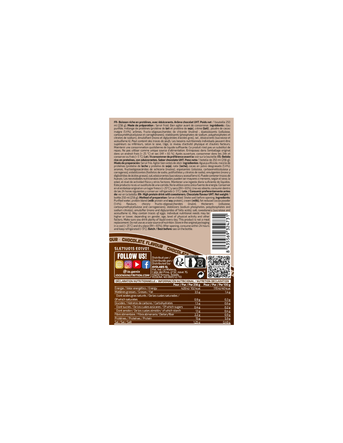 En la fórmula del Elixir Protein Shake, se utiliza agua como base, consiguiendo una disolución y digestión estupenda a la vez que se consiguen unos valores nutricionales únicos en un batido de proteína listo para tomar.