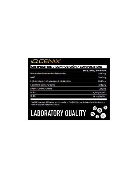 En IO GENIX® hemos completado la composición del PRE-TRAIN ROULETTE, con cafeína, taurina, citrulina y vitaminas B3 y B6. Gracias a esta composición, obtendrás ese empuje extra al iniciar tu entrenamiento que te ayudará a superarte cada día y lograr todo lo que te propongas.