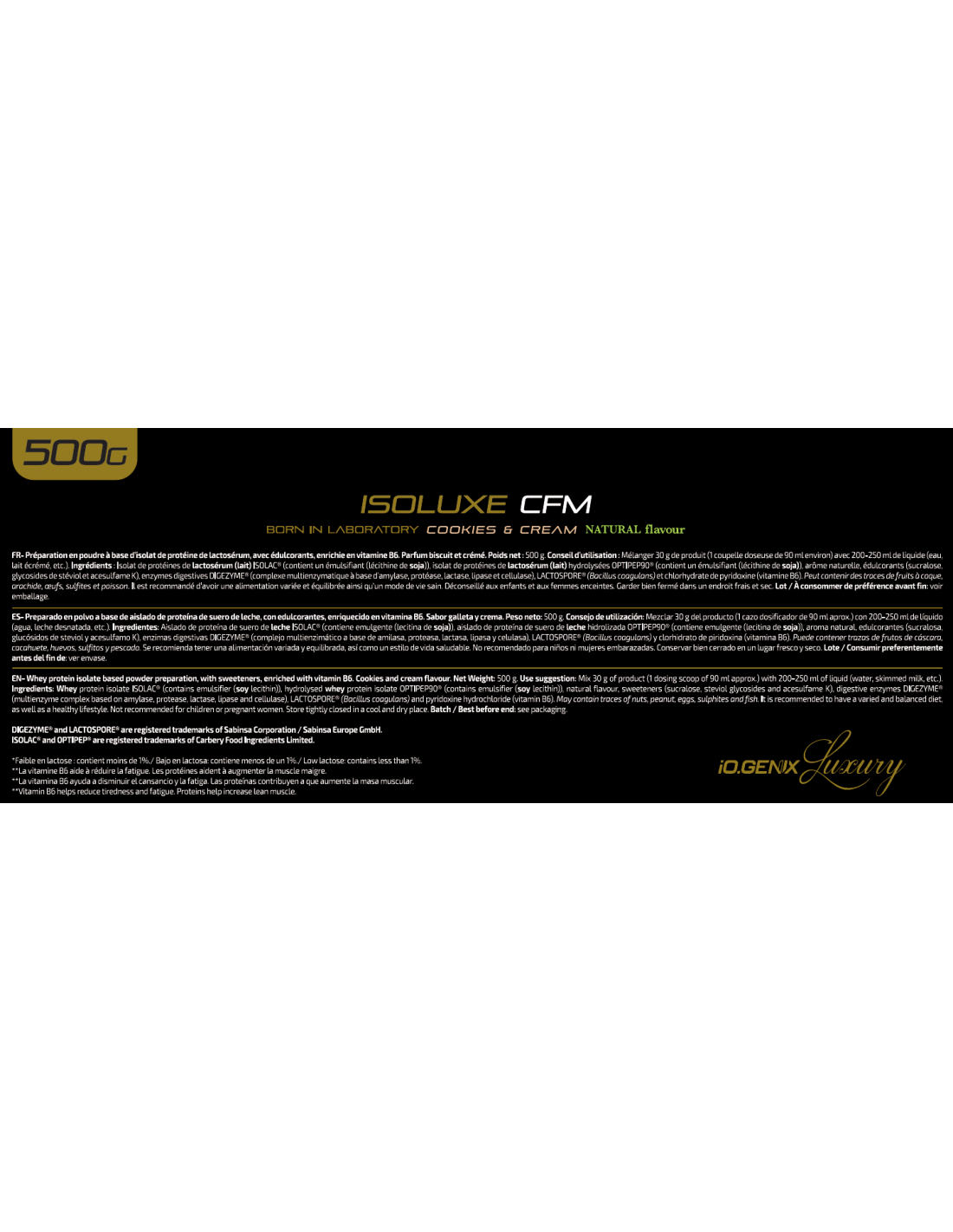 Desde iO.GENIX, os presentamos a ISOLUXE, una proteína innovadora y con ingredientes de calidad superior seleccionados cuidadosamente por nuestro equipo de laboratorio e I+D+I contando siempre con la ayuda de nuestros atletas más experimentados para conseguir la proteína que todos estábamos esperando.