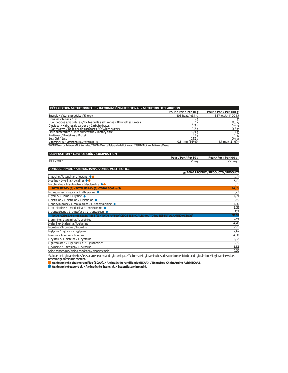 Un complejo enzimático formado por: amilasa, proteasa, lactasa, lipasa y celulasa que ayudan a fraccionar los nutrientes presentes en esta proteína, favoreciendo a su buena digestión y absorción